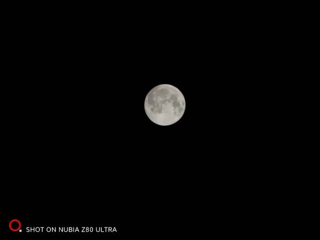 我们使用努比亚Z80 Ultra的后置摄像头拍摄了中秋节当天的月亮。在远摄模式下开启超级月亮模式,手机能够清晰地捕捉到月亮表面,色彩还原也非常准确,将月亮的神秘与美丽完美地呈现出来。