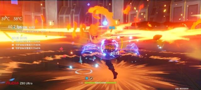 我们选择了热门的大型游戏进行体验。在《原神》全极致60帧画质游戏中,努比亚Z80 Ultra能够保持稳定一条线的帧率运行。游戏过程中,多个技能叠加释放,没有出现掉帧或卡顿的情况。